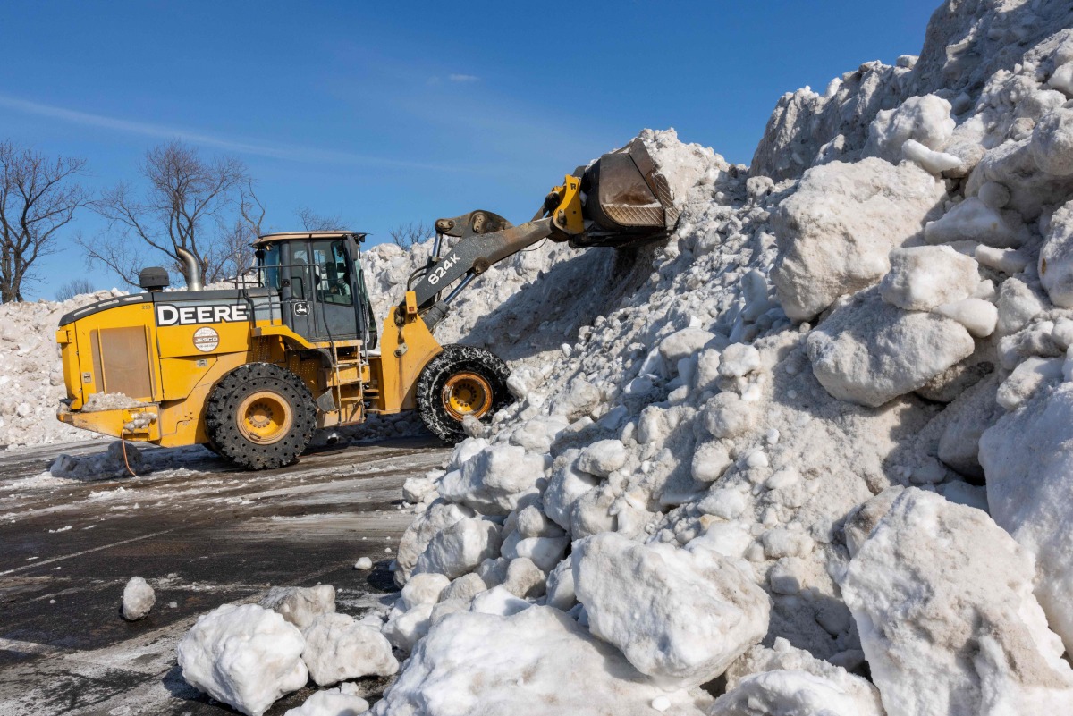 Snow is cleared and deposited in the parking lot of the RFK stadium on January 31, 2026 in Washington, DC. Photo by Alex Kent / GETTY IMAGES NORTH AMERICA / Getty Images via AFP