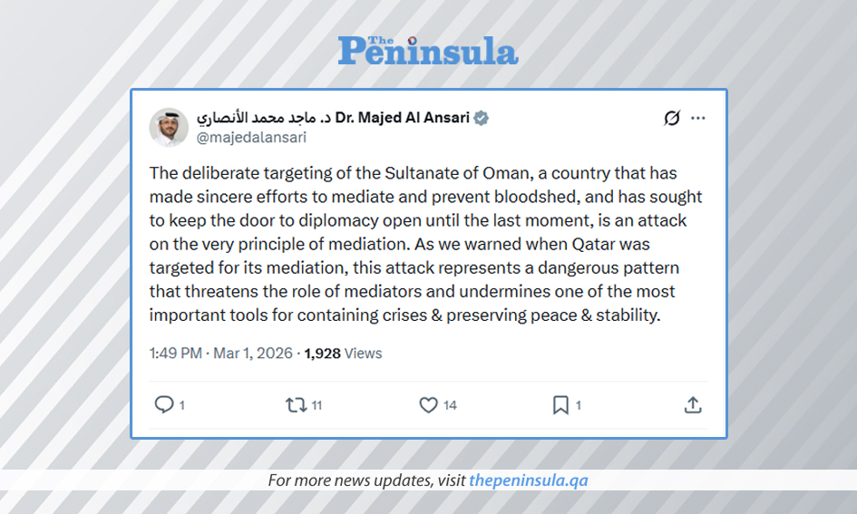 Advisor to the Prime Minister and Official Spokesperson for the Ministry of Foreign Affairs HE Dr Majed Al Ansari has warned that the attack on Oman sets a dangerous precedent, threatening the role of mediators. FULL TEXT
