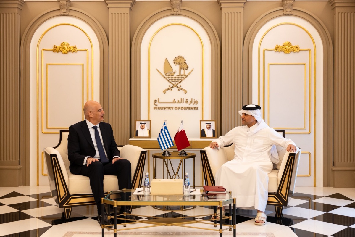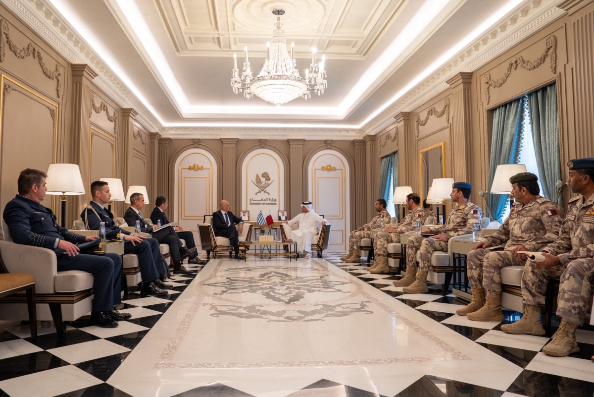 Doha, Qatar: Deputy Prime Minister and Minister of State for Defense Affairs HE Sheikh Saud bin Abdulrahman bin Hassan Al-Thani, met with H E Nikolaos Georgios Dendias, Minister of National Defense of the Republic of Greece, during his visit to the State of Qatar.