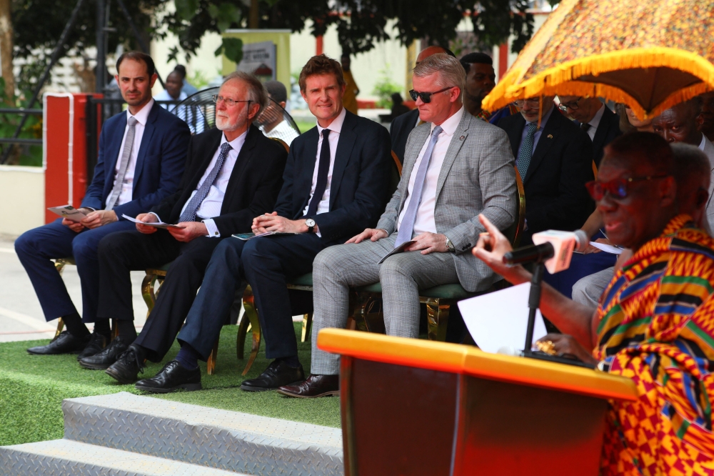 Representatives from the British Museum and the Victoria and Albert Museum (V&A) look on at the ceremony to exhibit the return of artefacts from the British Museum and the Victoria and Albert Museum (V&A), on a three-year loan at the Manhyia Palace Museum in Kumasi, Ghana, on May 1, 2024. (Photo by Nipah Dennis / AFP)