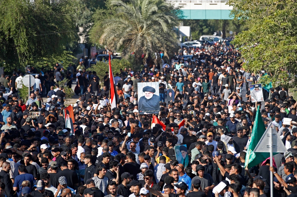 Supporters of Iraq's Sadrist movement gather during a protest outside Sweden's embassy in Baghdad on June 30, 2023, denouncing the burning of Islam's holy book. (Photo by Ahmad Al-rubaye / AFP)
