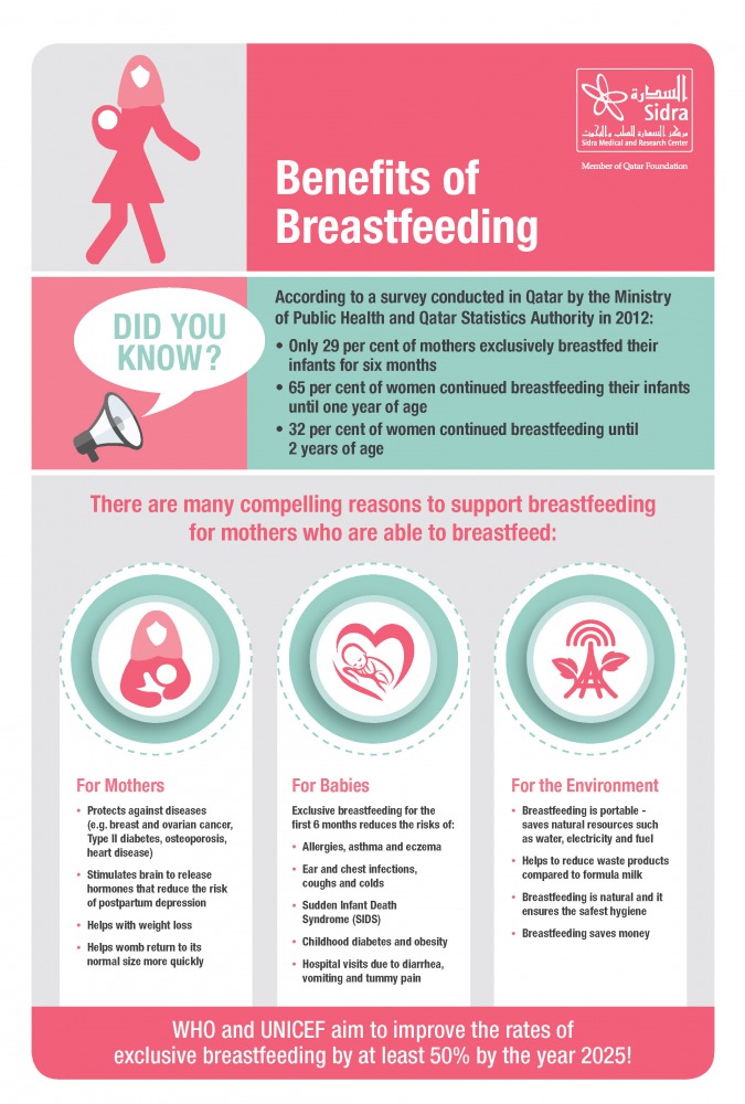 Patients and families visiting the Sidra Outpatient Clinic can visit an information booth till August 3, at the Obstetrics Clinic as well as join an education session about breastfeeding at the Patient Resource Center.