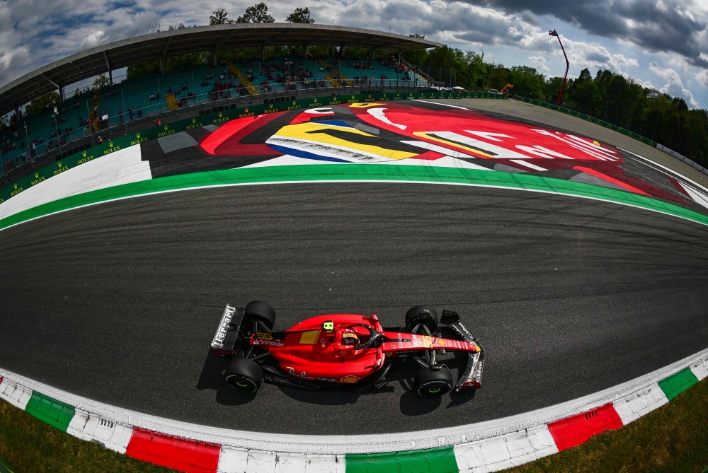 Ferrari's Spanish driver Carlos Sainz Jr drives during first practice session, ahead of the Italian Formula One Grand Prix at Autodromo Nazionale Monza circuit, in Monza on September 1, 2023. Photo by Ben Stansall / AFP