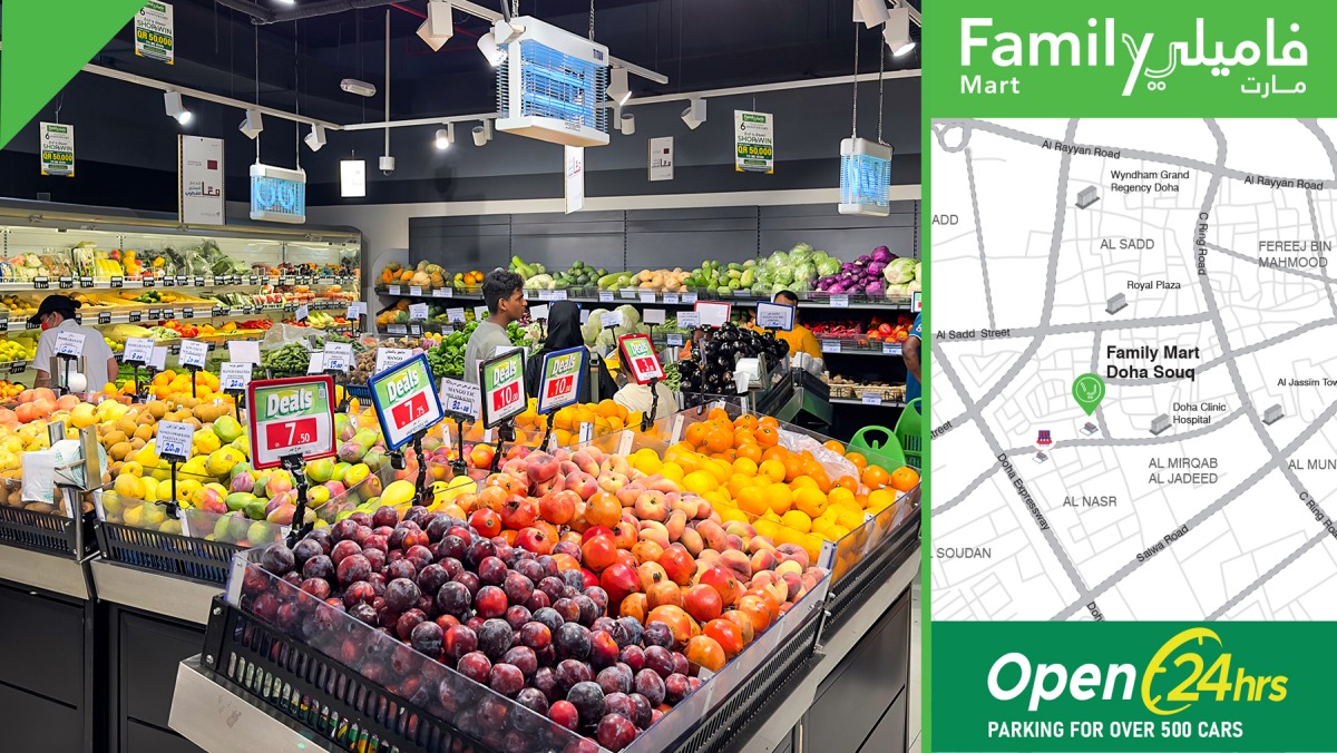 Known for its commitment to value, freshness, and quality, Family Mart offers a curated selection of essentials in a smartly designed space with ample parking for over 500 cars. The store specializes in hand-picked fresh produce, everyday essentials, and imported goods from around the world. Family Mart remains the go-to destination in Qatar for everything fresh, providing a seamless and efficient shopping experience.