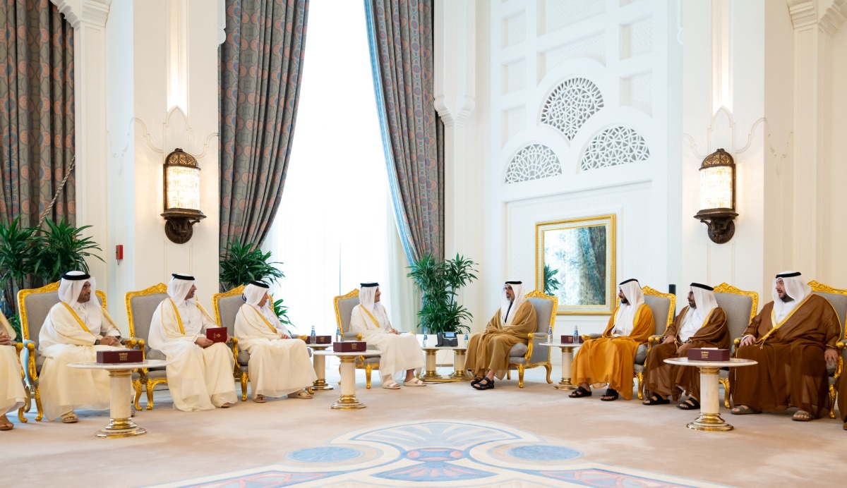 Doha, Qatar: Prime Minister and Minister of Foreign Affairs His Excellency Sheikh Mohammed bin Abdulrahman bin Jassim Al Thani met at the Amiri Diwan on Tuesday with Crown Prince of Abu Dhabi of the United Arab Emirates HH Sheikh Khaled bin Mohamed bin Zayed Al Nahyan, who is visiting the country.