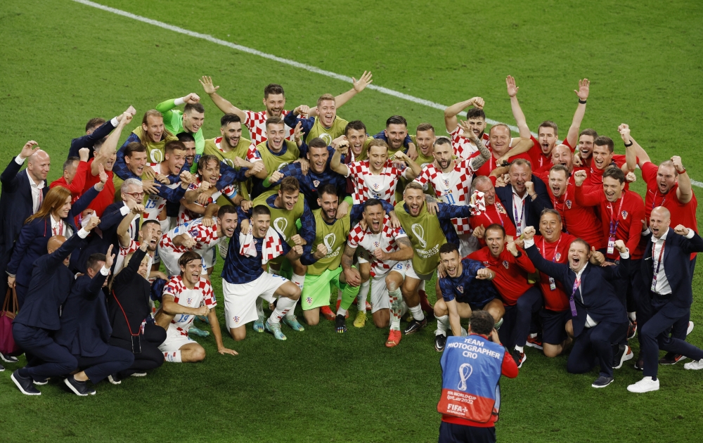 Croatia team members celebrate after the Qatar World Cup Group F match against Belgium at Ahmad Bin Ali Stadium on December 1, 2022. (REUTERS/Albert Gea)