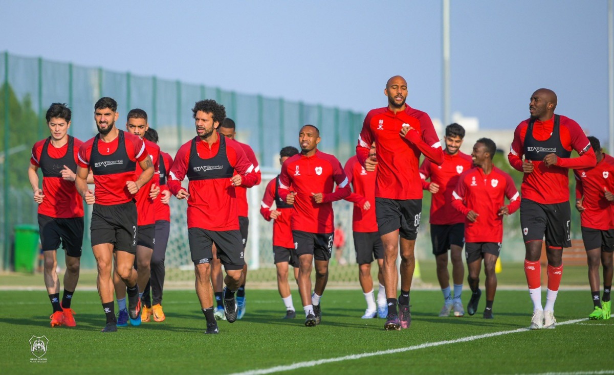 Al Arabi players train ahead of the resumption of the QNB Stars League.
