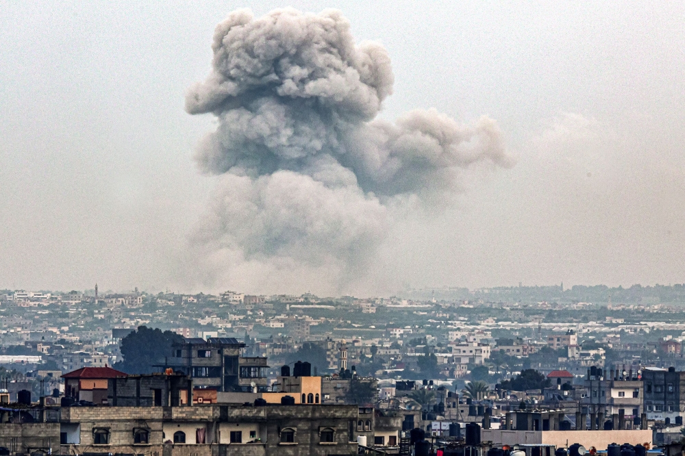 [3:45pm Doha Time] Smoke billows over Khan Yunis from Rafah in the southern Gaza during Israeli bombardment on January 2, 2024. (Photo by AFP)