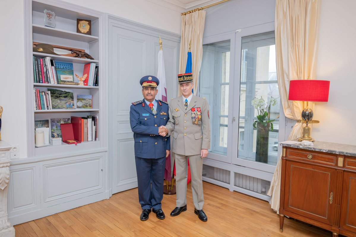 The decoration ceremony was followed by a meeting between HE the Chief of Staff of Qatar Armed Forces and the HE the Chief of Staff of the French Army, during which they discussed aspects of military cooperation between the two sides and ways to strengthen and develop them.