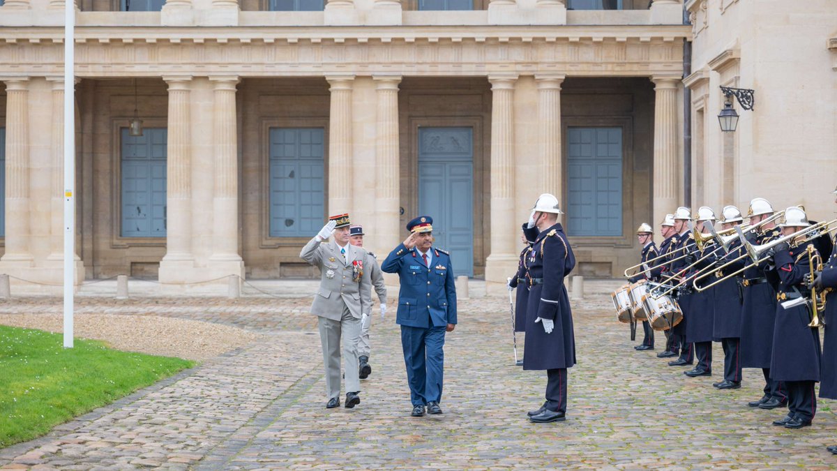 HE Chief of Staff of the French Army General Thierry Burkhard presented HE the Chief of Staff with the French National Order of the Legion of Honor during an official ceremony and an inspection of the Guard of Honor, in the presence of a number of senior officers and officials from both sides.