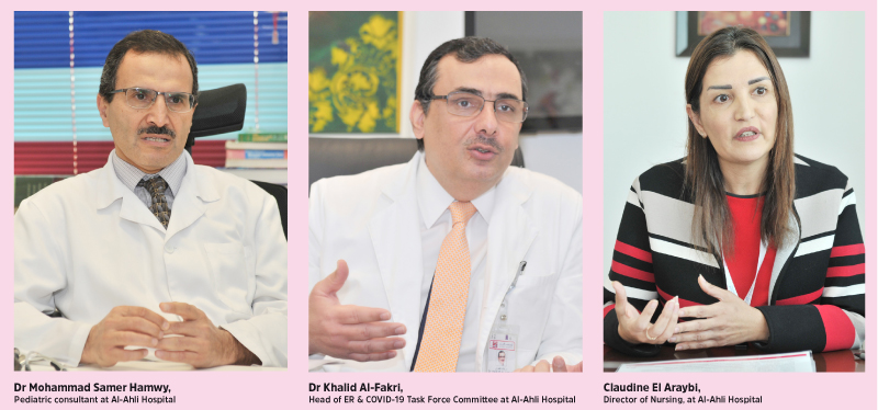 Dr Al-Fakhri, who is the Clinical Director and Consultant Surgeon at the Emergency Department at Al-Ahli Hospital, emphasised that the staff has been trained well and educated on how to deal with the present situation and handle guests. “In the ER we immediately implemented the regulations under the guidelines of the Communicable Disease Center and the MoPH for fast track triaging at all entrances of the hospital, we’ve implemented crowd regulation measures that apply to both guests and our staff, who are checked daily. Any suspected case will be taken to the ER and all these areas are well insulated from the rest of the hospital,” he said