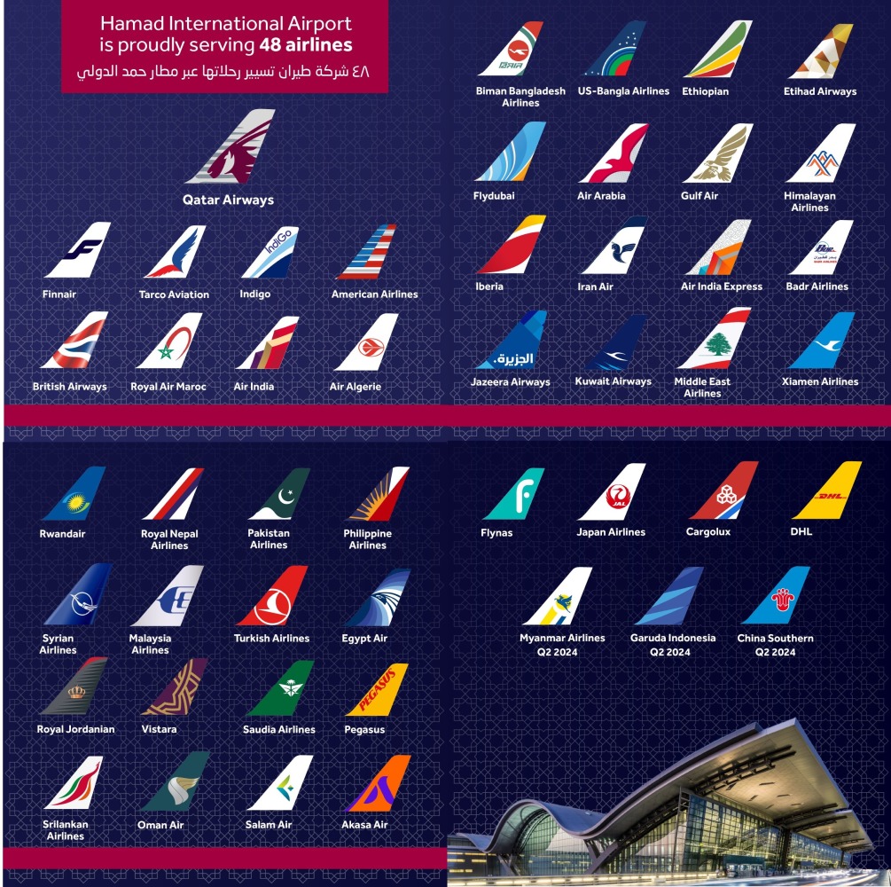 48 Airlines present at Hamad International Airport. Photo by HIAQatar from X.