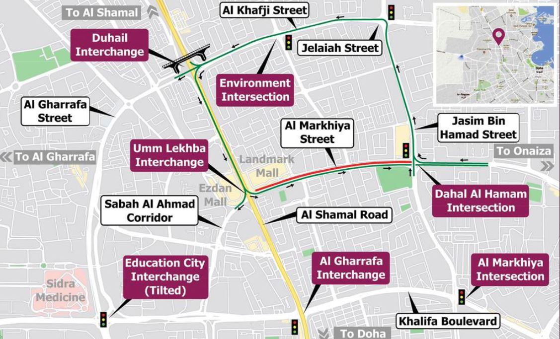 During the closure period, road users heading from Al Markhiya Street towards Sabah Al Ahmad Corridor through Umm Lekhba Underpass and Al Shamal Road can use Al Khafji Street and Duhail Interchange to reach their destinations.
