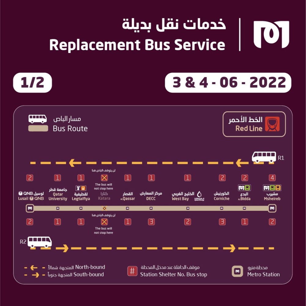 Due to an essential system upgrade across Red Line, Doha Metro will replace the metro with alternative services on June 3 and 4.