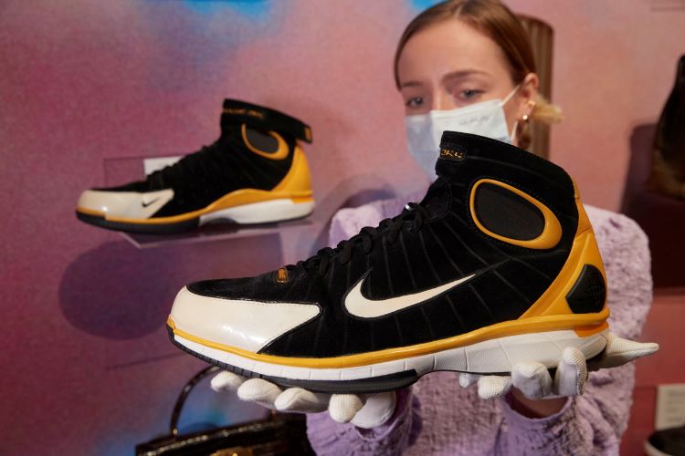 His yellow and black Nike shoes, U.S. size 14, are estimated at 25,000-35,000 Swiss francs.