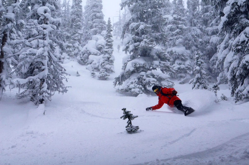 Dawn reveals a foot of new snow and a thickening storm that will eventually drop a total of 20 inches. We spend two days abolishing powder, at times finding ourselves utterly lost in one dense stand of conifers or another before emerging onto a cat track that leads back to a lift. One short hike delivers us to Three Bears, a sublime pitch of trees and mini cliffs where Bill and I stop twice to howl and high-five over our good fortune.