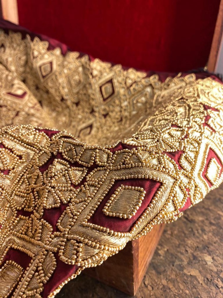Attention to detail, perfectly designed to your taste and liking, that’s what separates Manjulakshmi from fast fashion. This custom-made 1.5 metre clothe took 360 hours to finish. Usually worn in weddings, the clothe is purely made of silk which you cannot get in Qatar. “This is hand-made with high-quality golden beads.”