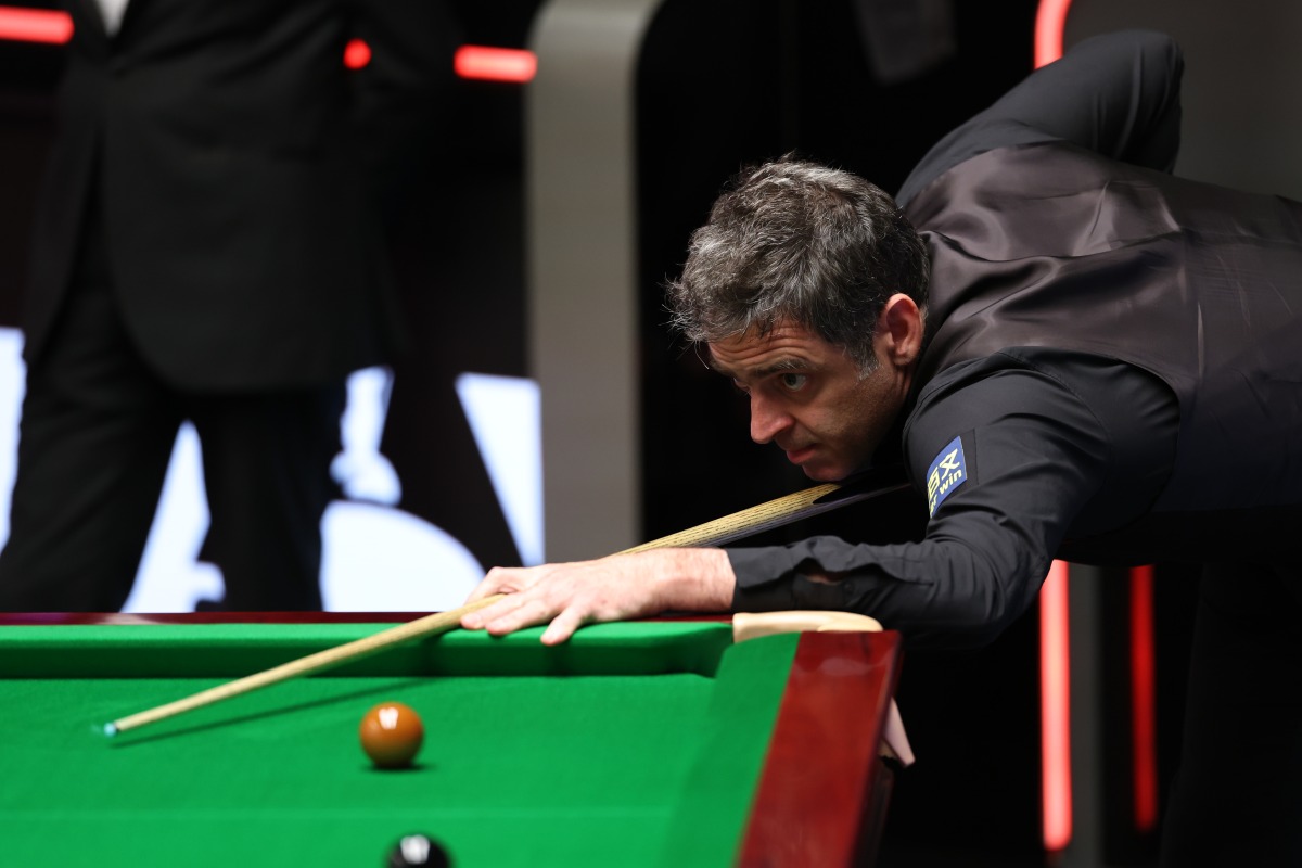Ronnie O'Sullivan plays a shot during the quarter-final match between Ronnie O'Sullivan of England and Si Jiahui of China at World Snooker Championship 2025 in Sheffield, Britain, April 30, 2025. (Photo by Zhai Zheng/Xinhua)