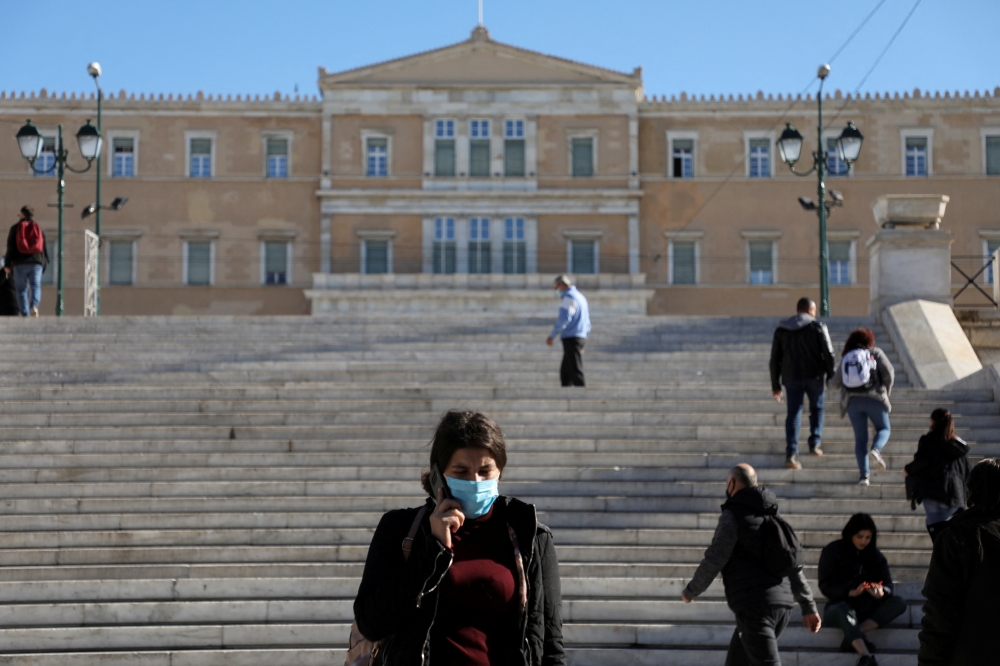 File Photo: People wearing protective face masks make their way on Syntagma square after the Greek government imposed mandatory covid vaccinations for people aged 60 and over, in Athens, Greece, December 1, 2021. (REUTERS/Louiza Vradi)