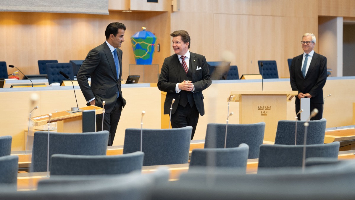 Doha, Qatar: The Amir HH Sheikh Tamim bin Hamad Al Thani met with Speaker of the Parliament of Sweden (Riksdag) HE Andreas Norlen at the Riksdag headquarters in Stockholm today.