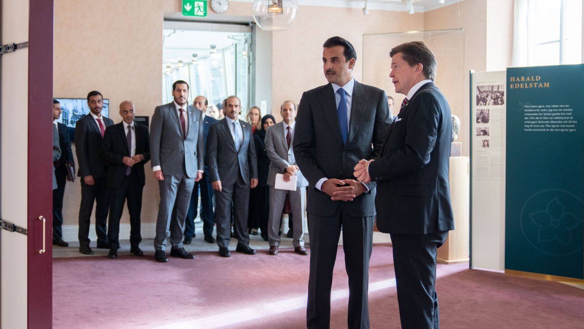 HH the Amir toured the Parliament building, during which he was briefed on the history of the Swedish Parliament and its development over the years.