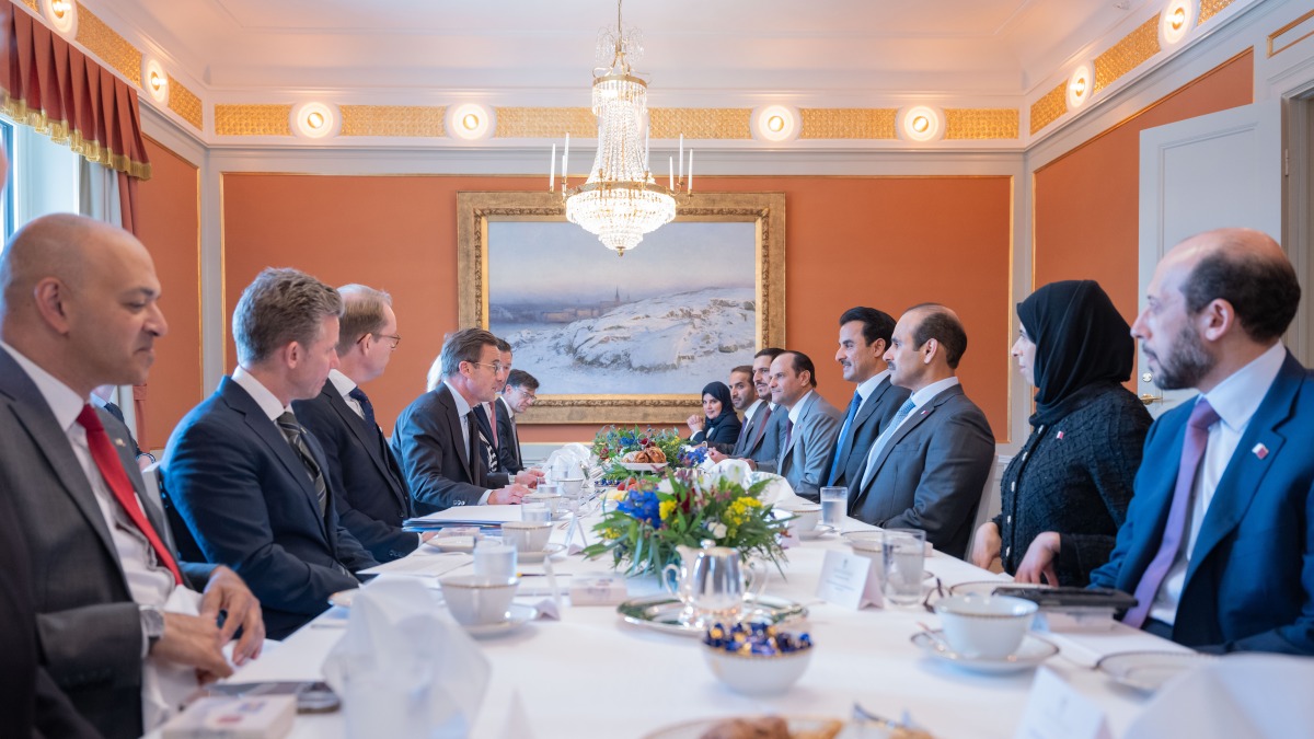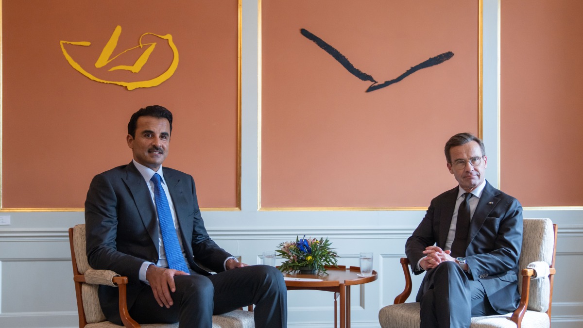 Stockholm: The Amir HH Sheikh Tamim bin Hamad Al Thani and Prime Minister of the Kingdom of Sweden HE Ulf Kristersson held on Tuesday a session of official talks at the seat of the Government "Rosenbad" in Stockholm.
