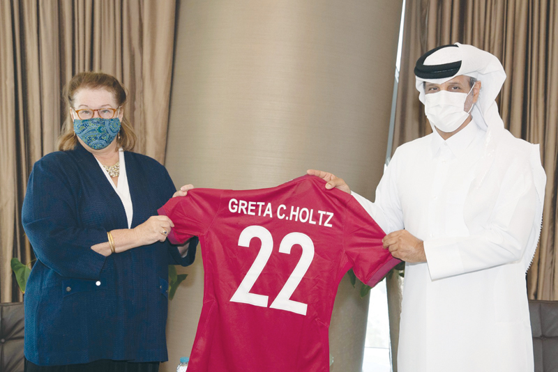 Doha: Sheikh Hamad bin Khalifa bin Ahmed Al Thani, President of the Qatar Football Association (QFA), yesterday received in his office Chargé d’Affaires of the US embassy in Doha, Ambassador H E Greta C Holtz, and her accompanying delegation.