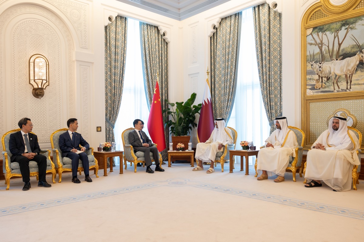 Doha, Qatar: The Amir HH Sheikh Tamim bin Hamad Al-Thani met at the Amiri Diwan on Monday morning with Vice President of the People's Republic of China, HE Han Zheng and his accompanying delegation, currenltly visiting Qatar to participate in the Second World Summit for Social Development, slated for Nov. 4-6 in Doha.