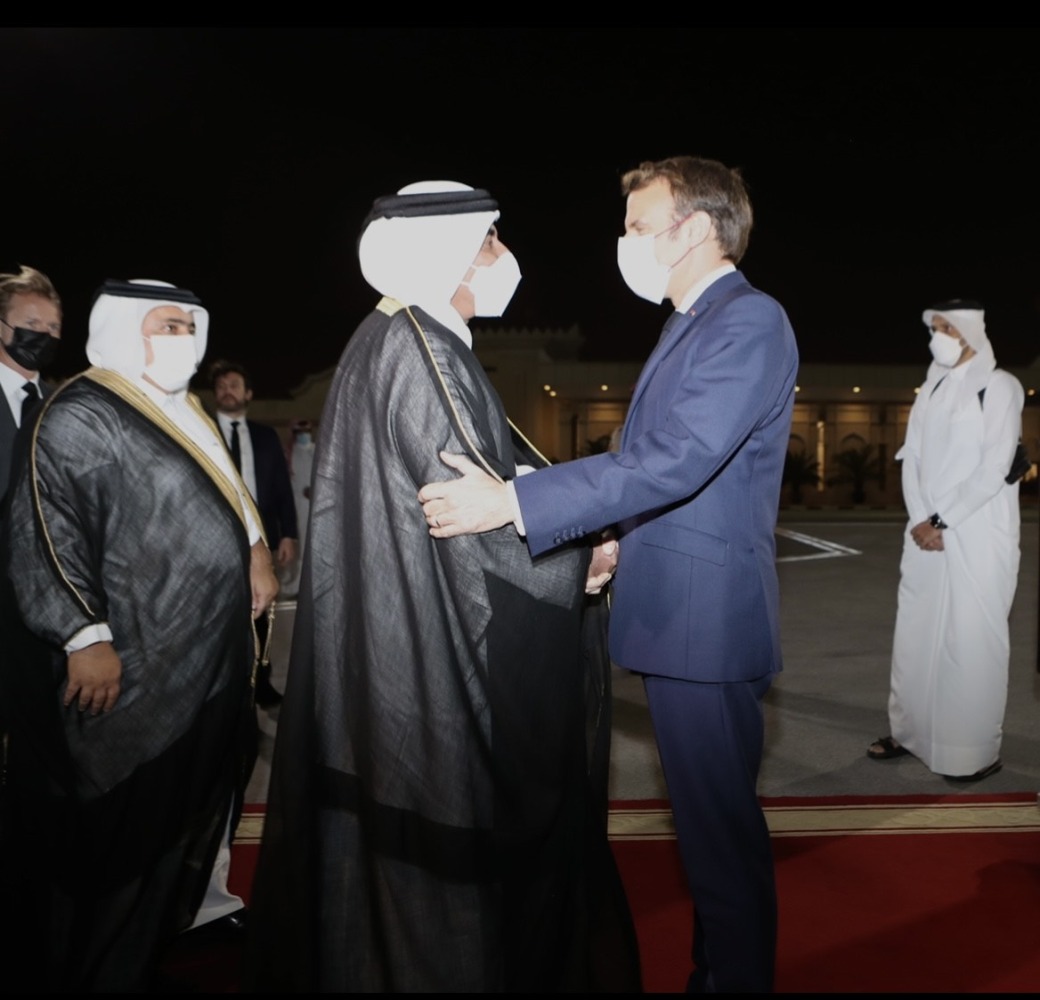 Doha: President of the French Republic HE Emmanuel Macron arrived in Doha Friday evening, on a working visit.