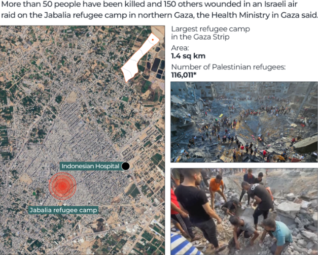 [8 pm Doha Time] The Israeli military targeted the Jabalia refugee camp for a second day. Several homes were destroyed, killing dozens of people. More are buried under the rubble. Read more.