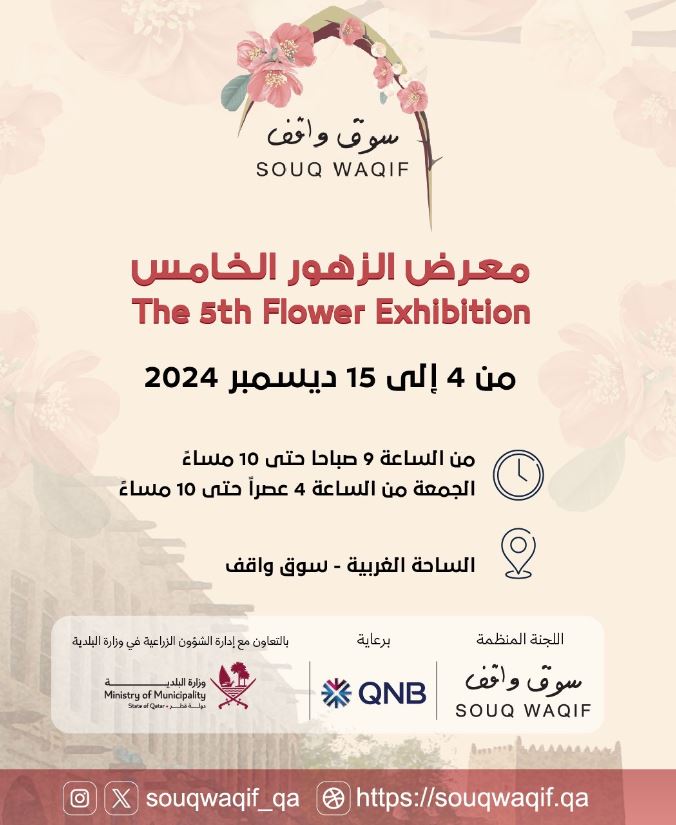 Doha, Qatar: Souq Waqif, one of Qatar’s most prominent tourist destinations, has announced via social media the launch of the 5th Flower Exhibition and the opening of registrations for the 6th Souq Waqif International Arabian Horse Show.