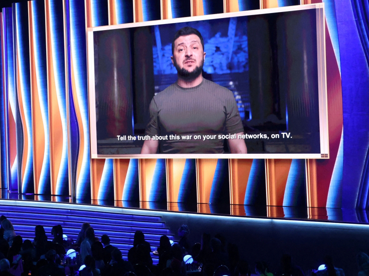 Midway through the ceremony, host Trevor Noah introduced a video message from Zelenskiy, who contrasted the joy found through music to the devastation caused by Russia's invasion of his country more than a month ago.