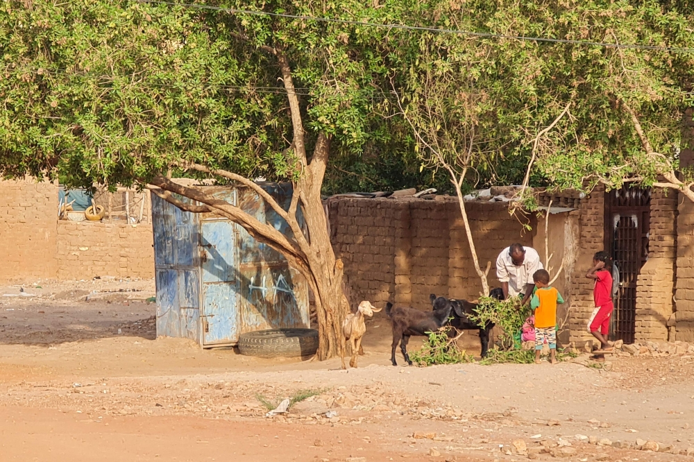 A family herds goats in a southern Khartoum neighbourhood, on June 3, 2023, as fighting persists between two rival generals. (Photo by AFP)
