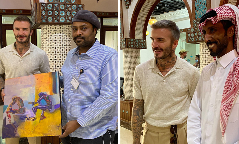 Doha: English Football legend David Beckham is currently visiting Qatar, many posts on social media showed. He was seen touring the Souq Waqif with some Qatari officials and was seen in videos posted on social media taking a photo with the installation of César's Pouce (thumb sculpture ). He also visited the Souq Waqif art centre.