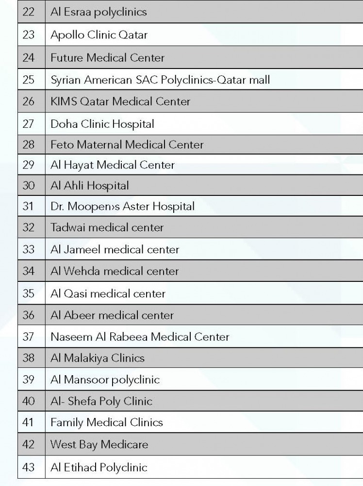 The list of 43 private clinics across Qatar has been published below.