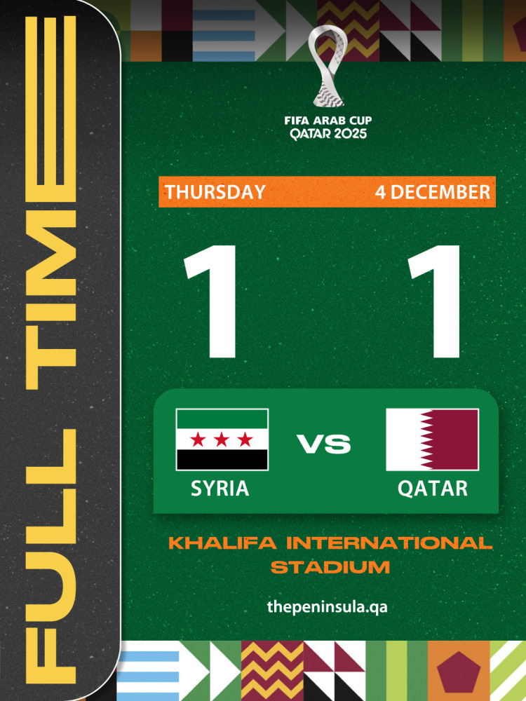 Syria and Qatar battle to a 1–1 draw as both sides walk away with a point each. A tense, hard-fought match to the very end!