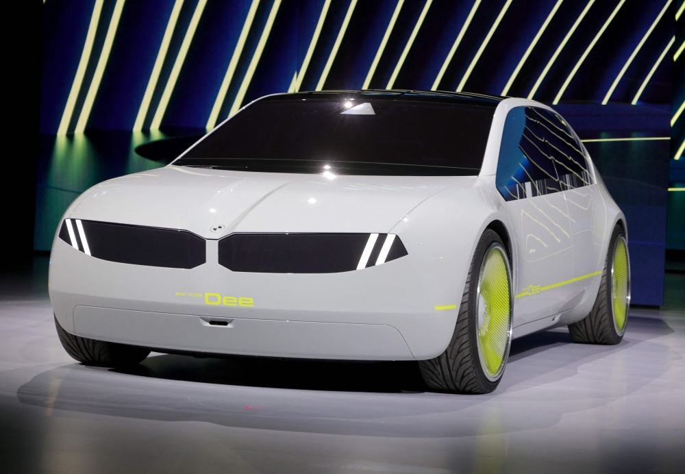 The BMW i Vision Dee (Digital Emotional Experience) concept EV sport sedan is introduced at CES 2023 at The Pearl concert theater at Palms Casino Resort on January 04, 2023 in Las Vegas, Nevada. (Photo by Ethan Miller / Getty Images via AFP)
