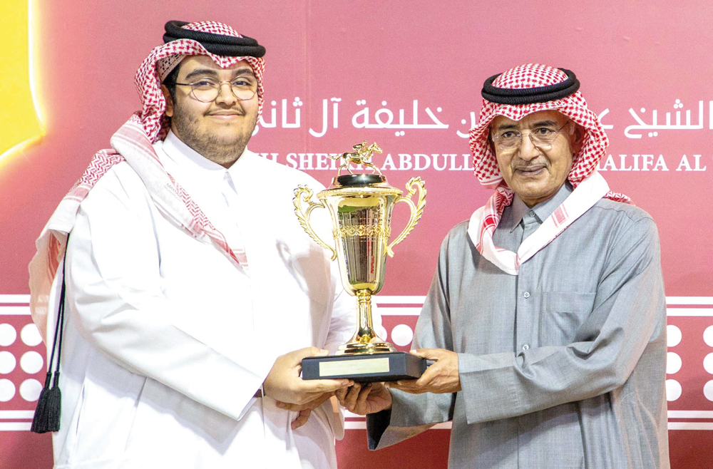 H H Sheikh Abdullah bin Khalifa Al Thani crowned the winners of the HH Sheikh Abdullah Bin Khalifa Al Thani Trophy at 20th Al Rayyan Meeting. QREC Chairman Issa bin Mohammed Al Mohannadi was also present.