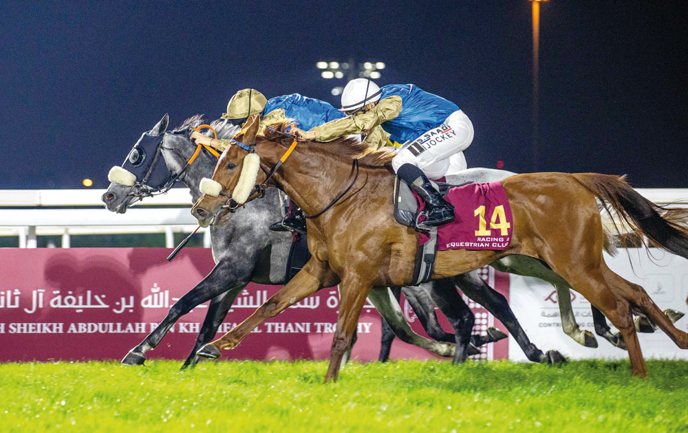 Doha, Qatar: Razy with Mickael Barzalona in the saddle capped exciting action at Al Rayyan Racecourse securing the HH Sheikh Abdullah Bin Khalifa Al Thani Trophy with a thrilling victory yesterday.