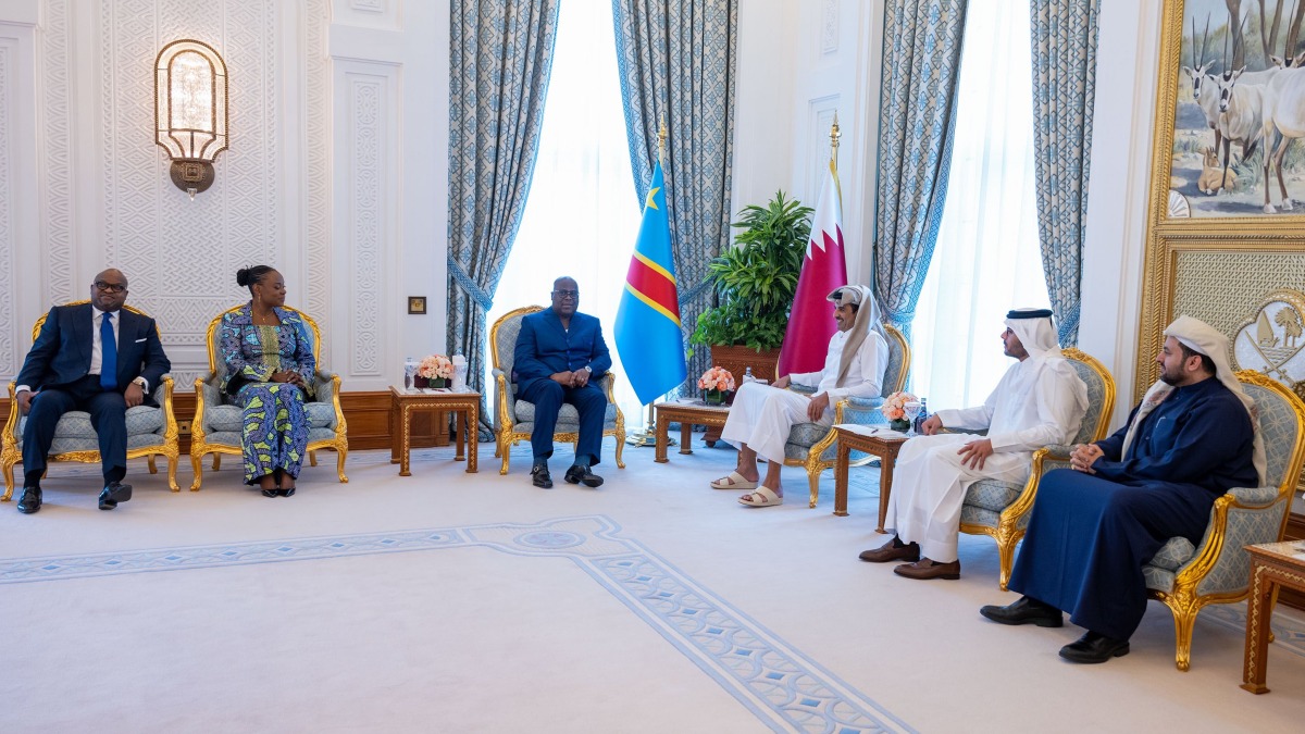 Doha, Qatar: The Amir His Highness Sheikh Tamim bin Hamad Al Thani received at the Amiri Diwan President of the Democratic Republic of the Congo HE Felix Tshisekedi on Sunday, January 5, 2025.