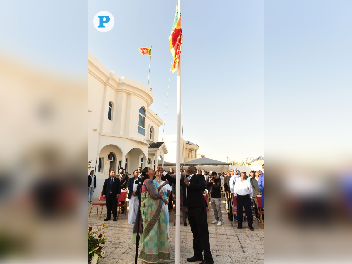Ambassador of Sri Lanka to the State of Qatar H E Sithara Khan Azard, hoisted the national flag before a gathering of the Sri Lankan community. The community members then joined the choir of the Stafford Sri Lankan School in Doha to sing the national anthem, followed by two minutes of silence in remembrance and honor of all the patriots who sacrificed their lives to liberate the motherland.