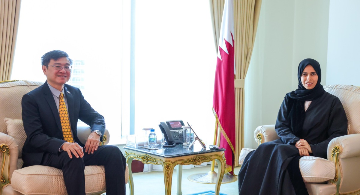 Doha, Qatar: Minister of State for International Cooperation at the Ministry of Foreign Affairs HE Lolwah bint Rashid Al Khater met on Wednesday with Ambassador of the Republic of Singapore to the State of Qatar HE Wong Chow Ming.
