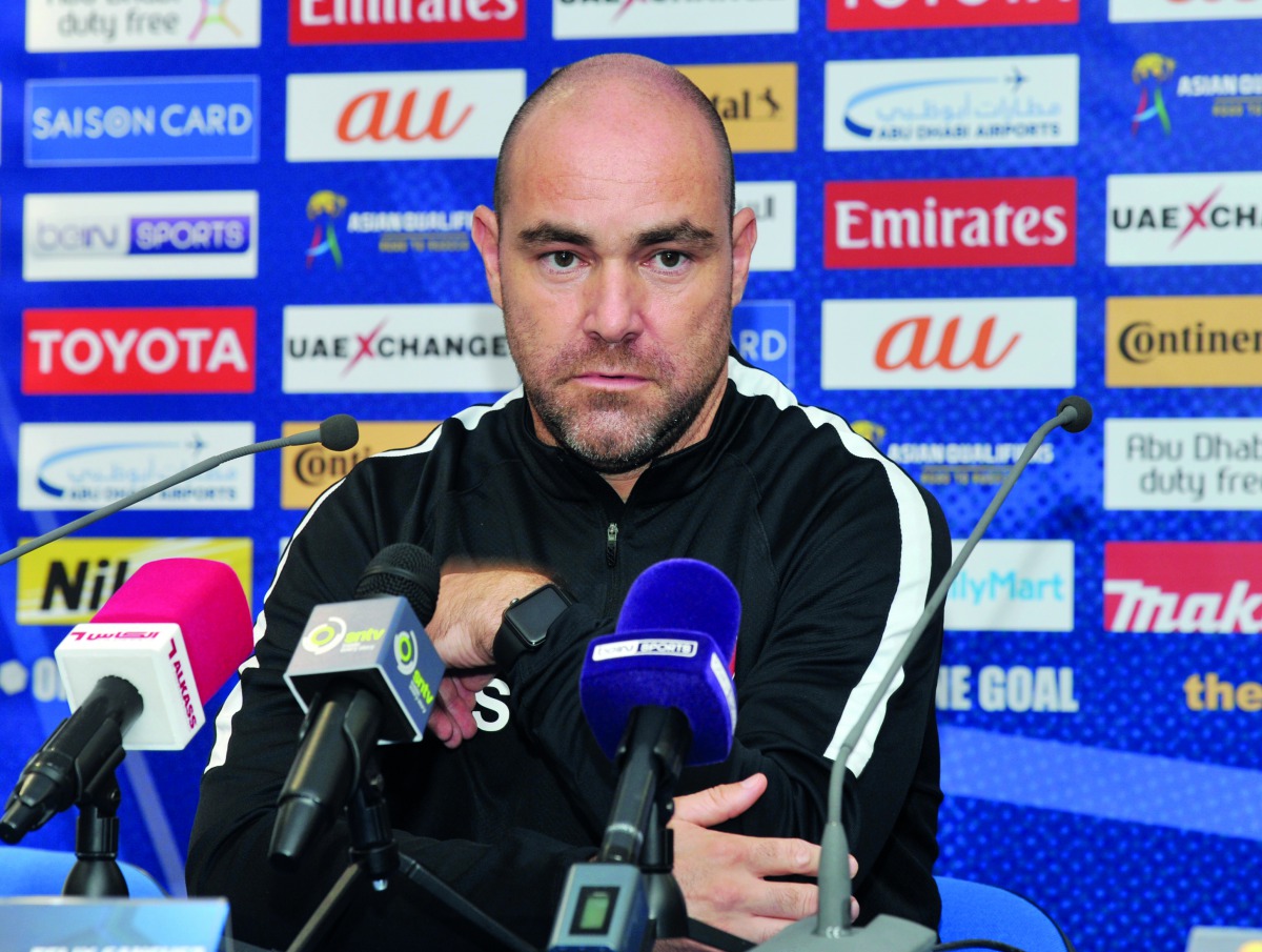 Qatar coach Felix Sanchez speaking at a press conference held at the Khalifa International Stadium yesterday. Picture: Kammutty VP