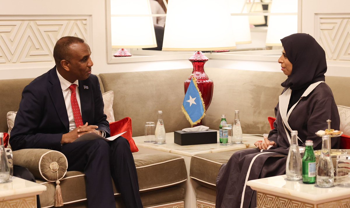 Doha, Qatar: The Prime Minister of the Federal Republic of Somalia HE Hamza Abdi Barre received today Qatar's Minister of State for International Cooperation at the Ministry of Foreign Affairs, HE Lolwah bint Rashid Al Khater, at his residence in Doha.