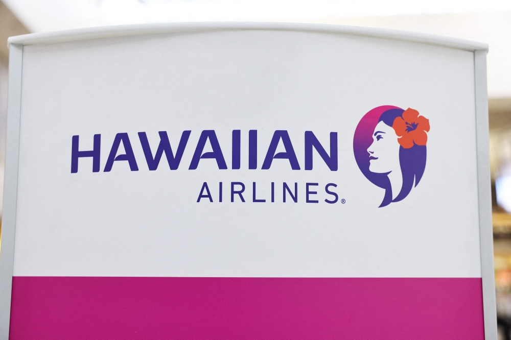 BOTTOM IMAGE: The Hawaiian Airlines logo is displayed at a check-in area at Los Angeles International Airport (LAX) on December 4, 2023 in Los Angeles, California. (Photo by MARIO TAMA / GETTY IMAGES NORTH AMERICA / Getty Images via AFP)