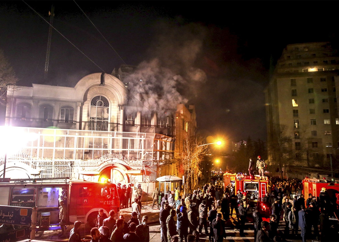 In Tehran, hundreds of demonstrators set fire to the Saudi embassy and police make 40 arrests. In Mashhad, northeastern Iran, four are arrested after a crowd torches a Saudi consulate.