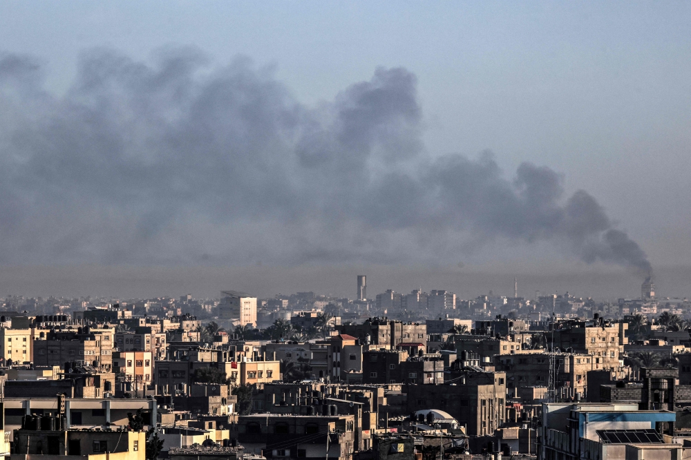 A picture taken from Rafah on January 5, 2024 shows smoke billowing over Khan Yunis in the southern Gaza Strip during Israeli bombardment. (Photo by AFP)