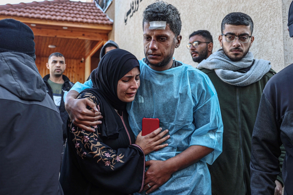 Relatives of Palestinians killed during Israeli bombardment, mourn their loved ones at the European hospital in Khan Yunis in the southern Gaza Strip, on January 6, 2024. (Photo by AFP)