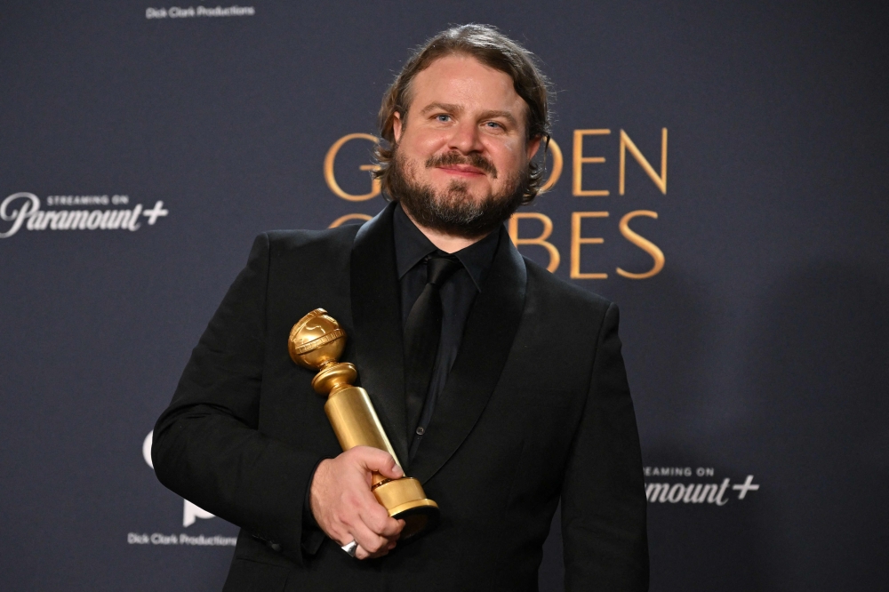 US director Brady Corbet poses with the award for Best Director – Motion Picture for "The Brutalist". (Photo by Robyn BECK / AFP)
