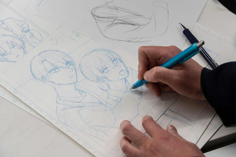 Photo taken on February 6, 2023 shows a student drawing during a manga art design class at the Tokyo Design Academy in the Harajuku area of Tokyo. Photo by Richard A. Brooks / AFP